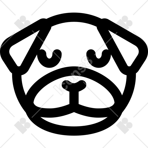 Find other icons related to Pensive pug dog expression emoticon in isolated place vector icon. These icons have matching tags. Discover all animal icons to find more icons of this topic.